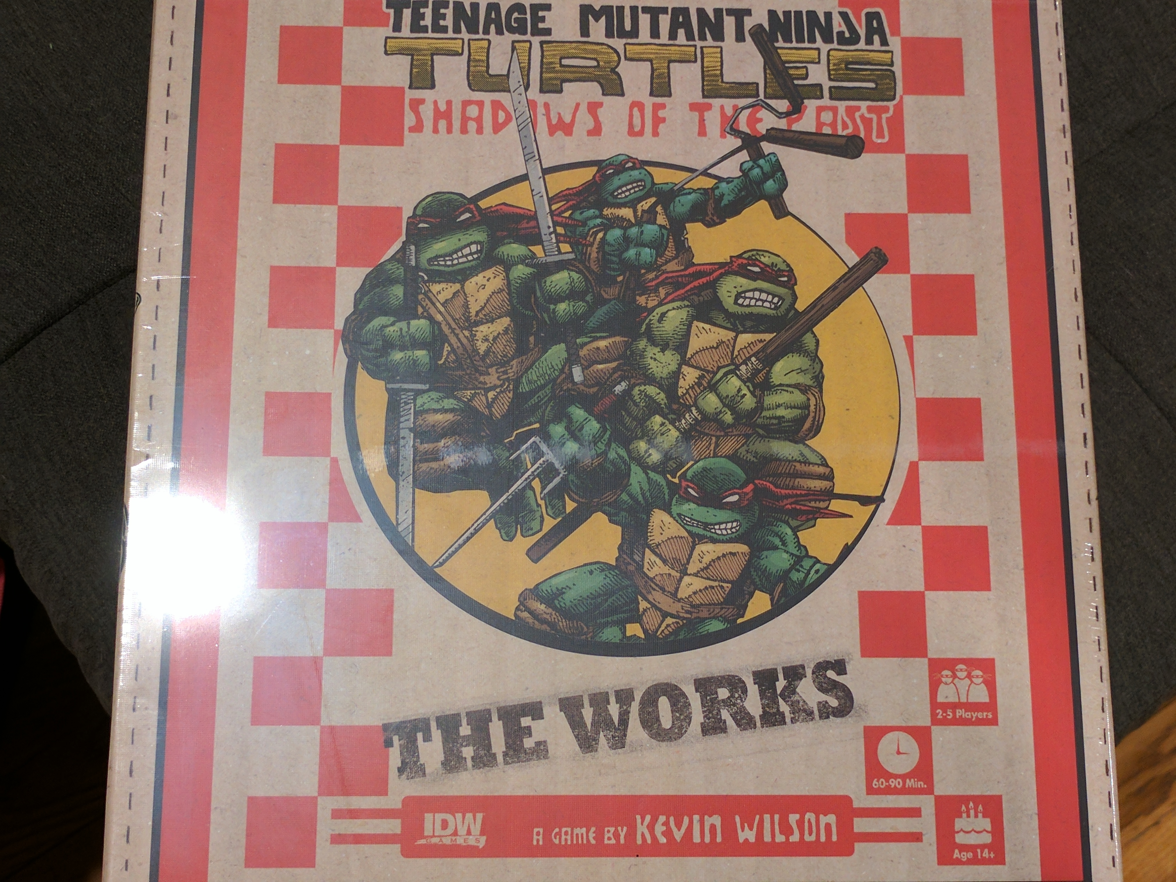Happy New Year all you Turtle fans! Over the holiday, I finally got my Works Edition of TMNT: Shadows of the Past board game. I haven’t played it yet, but I thought I would share my unboxing. The Works Edition was available to Kickstarter backers who pledged $150. This was my first Kickstarter project, so I was initially nervous about spending so much, but how could I not pull the trigger on a Turtles board game? So I did, and boy did it pay off!