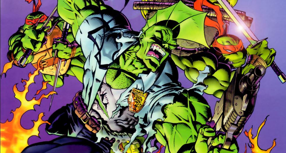 In the mid-1990s, the last issues of Teenage Mutant Ninja Turtles by Kevin Eastman and Peter Laird had been written, and the series is now in its second volume with neither of the co-creators at the helm. Turtlemania has died down (thanks largely to the turd that is TMNT III), and the comics industry received a shot in the arm from some upstart publisher called Image Comics. Founded by some of the industry’s biggest artists, including Jim Lee and Todd McFarlane, Image continues to be the destination for mainstream, creator-owned comics. And in the publisher’s early days, they managed to team up with Mirage Studios for a crossover between some of the 1990s most popular characters: the Teenage Mutant Ninja Turtles and the Savage Dragon. That successful crossover paved the way for a second one, published in 1995.